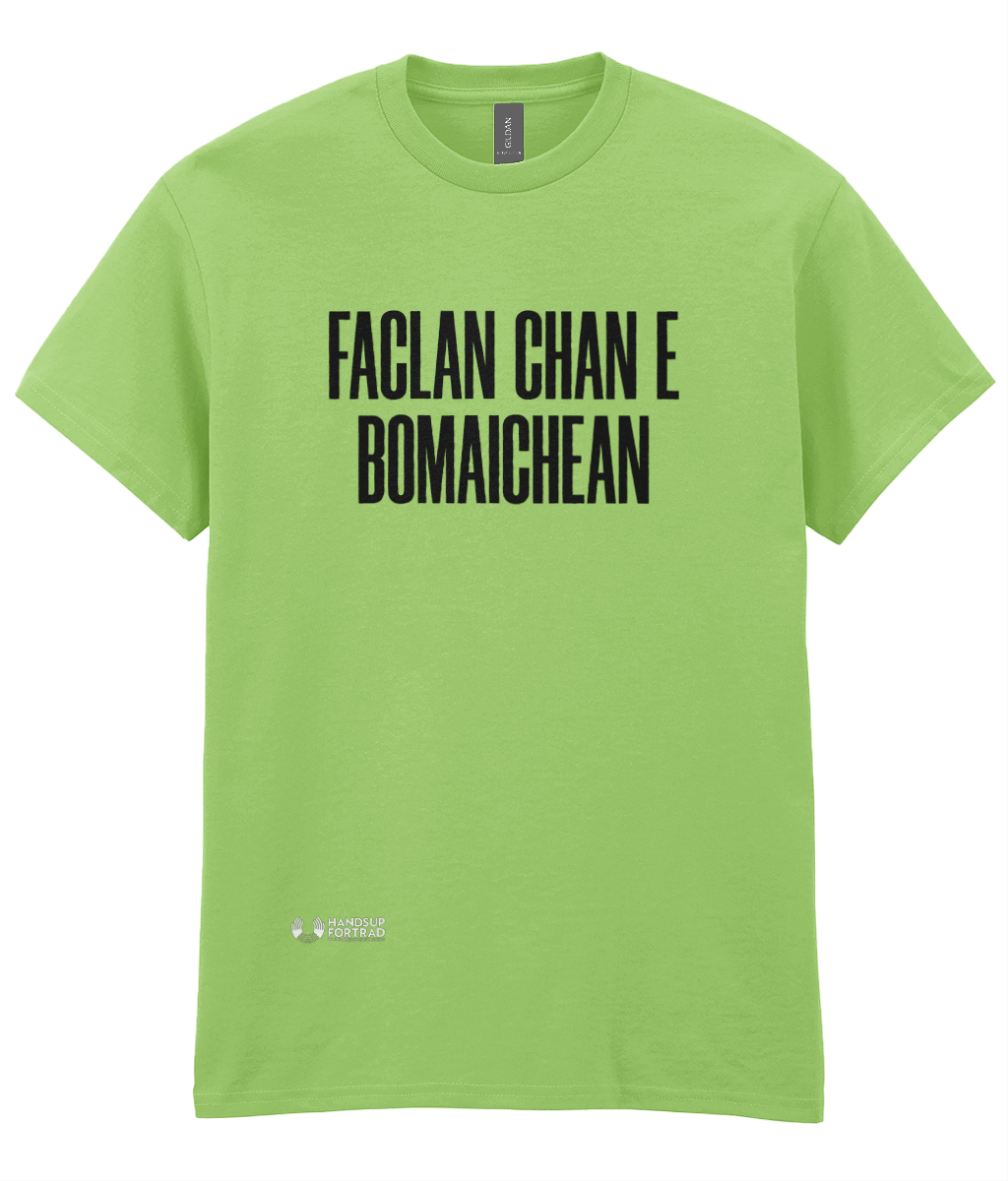 Faclan Chan e Bomaichean (Words Not Bombs) is a traditional cry for peace which is sorely needed at the moment. The income from these t-shirts go to support the work of Hands Up for Trad so thank you. T-shirts will be sent out in 5 days.