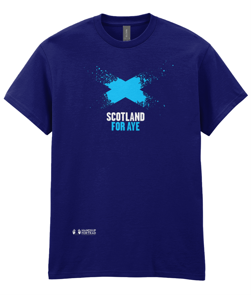 You might have seen our Alba Gu Bràth t-shirts which means Scotland Forever in Gaelic. Well Scotland for Aye mean the same in Scots. All t-shirts sold go to support the work of Hands Up for Trad. Thanks very much!