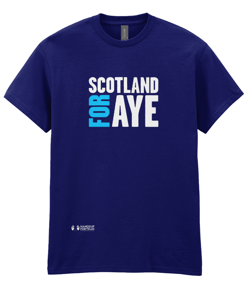 You might have seen our Alba Gu Bràth t-shirts which means Scotland Forever in Gaelic. Well Scotland for Aye mean the same in Scots. All t-shirts sold go to support the work of Hands Up for Trad. Thanks very much!