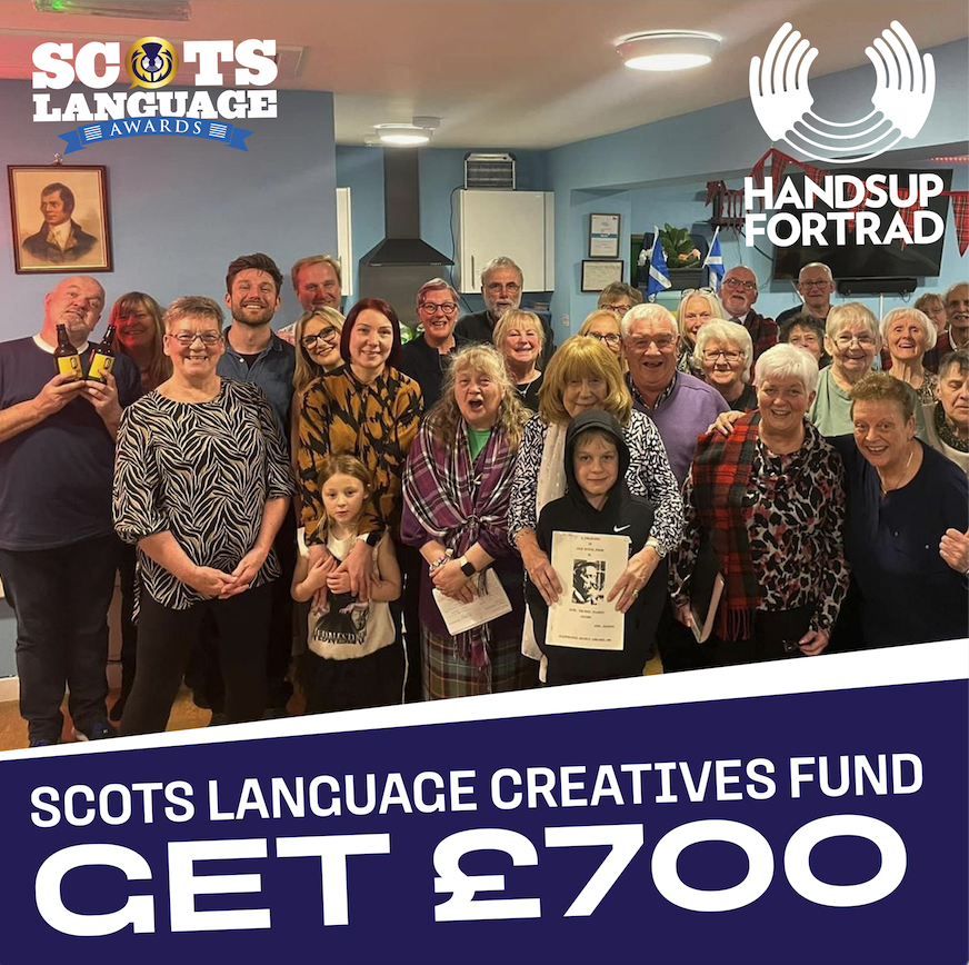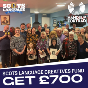 Here at Hands up For Trad we were glad tae wark wi Creative Scotland tae gie oot 14 grants o £700 tae Scots Language Creative fowk.